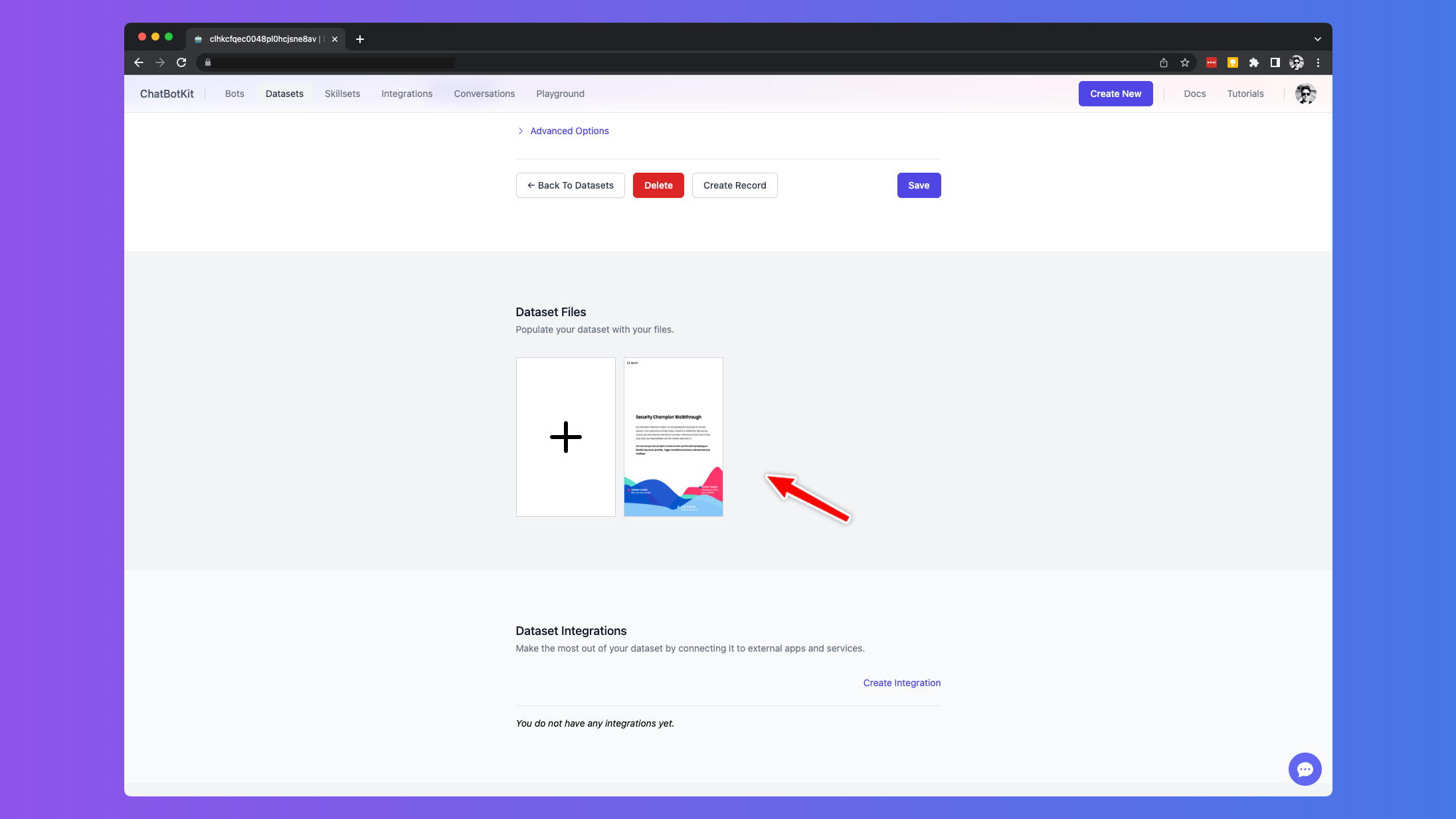 We are excited to announce that ChatBotKit Datasets now support file attachments! Traditionally, when importing a dataset, it is automatically translated into records, and the original file is not retained. This means that further training is not possible unless the same file is provided again. However, with our new file attachment feature, the original file (whether it's a PDF, DOCX, CSV, or any other file type) is attached to the dataset. This file is clearly visible to the user, and resyncing can be done with a single click.