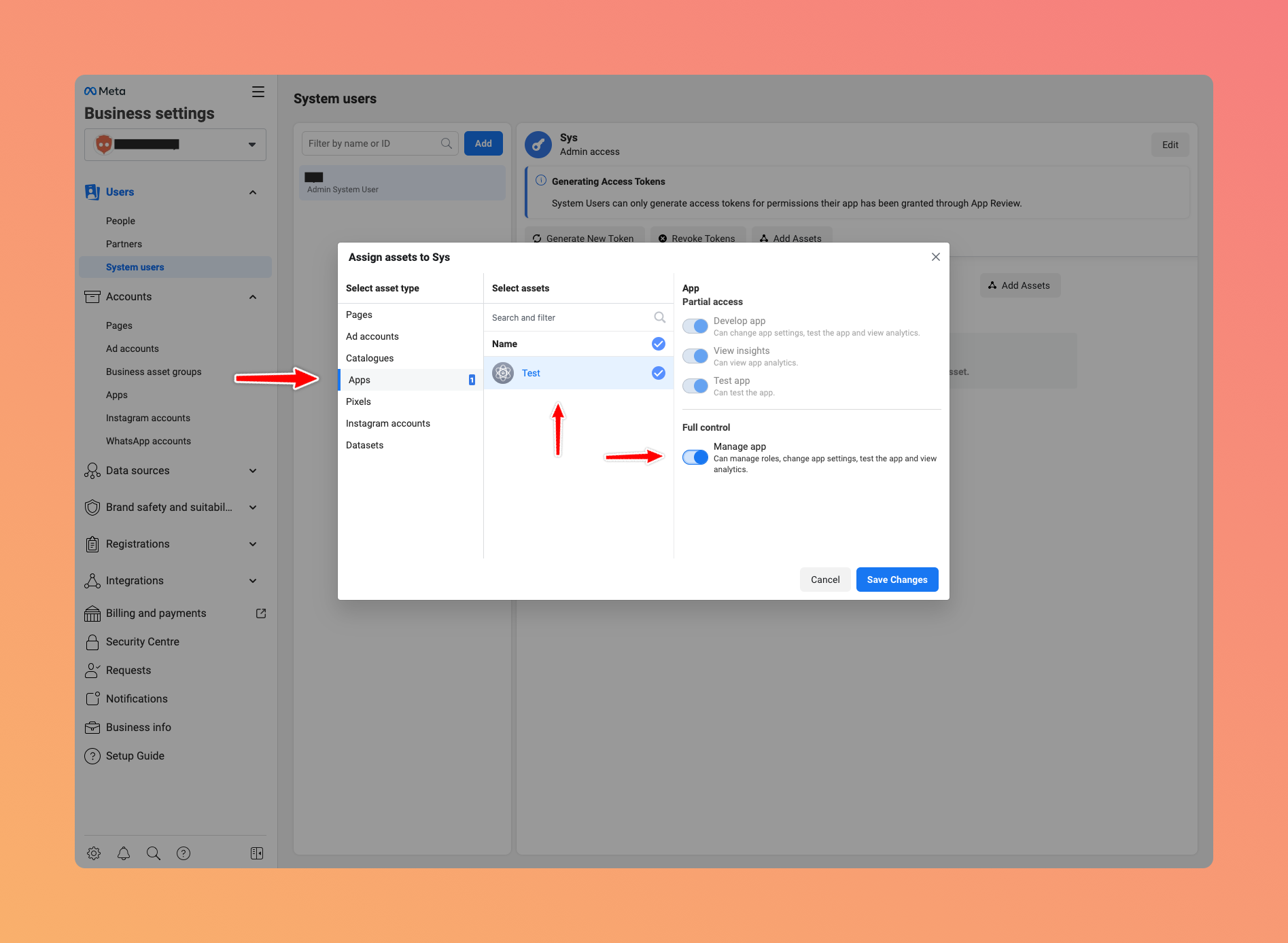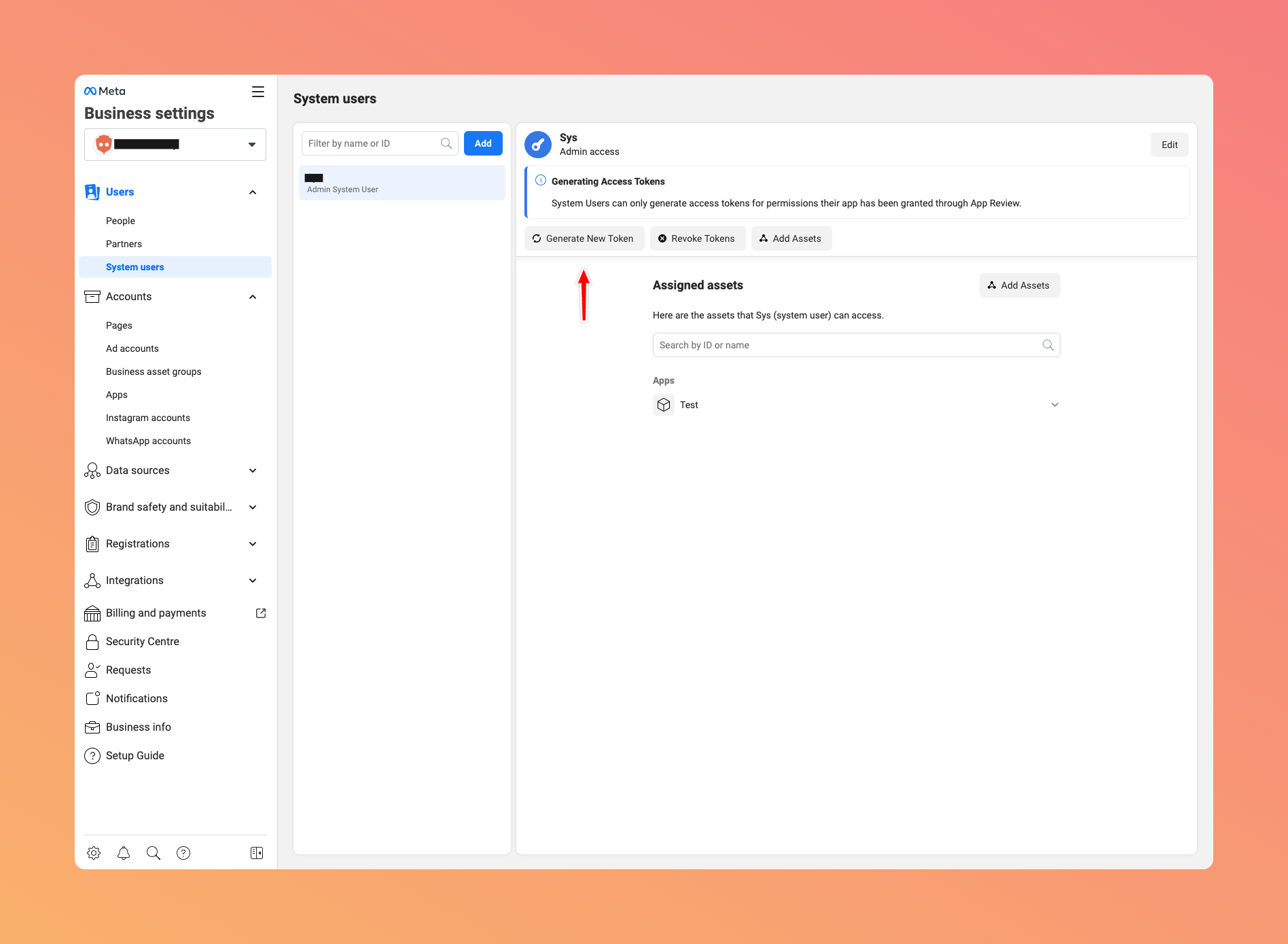 Go to your Meta Business to create a new user if you do not have one already.