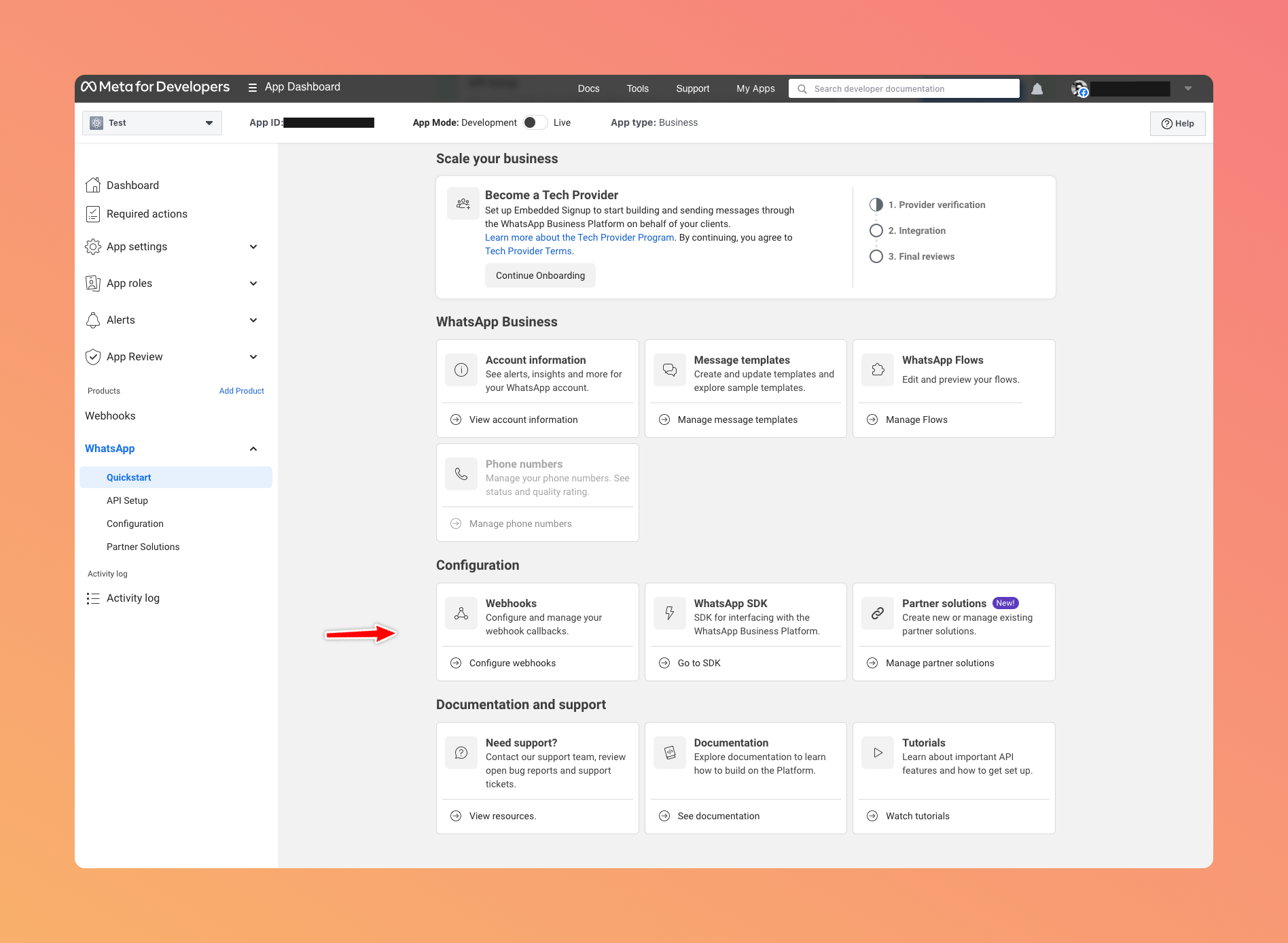 Before you proceed you will need Meta Business account. Depending on your business account status you may also need to setup payment details get a permanent or a test phone number which is required in subsequent steps.