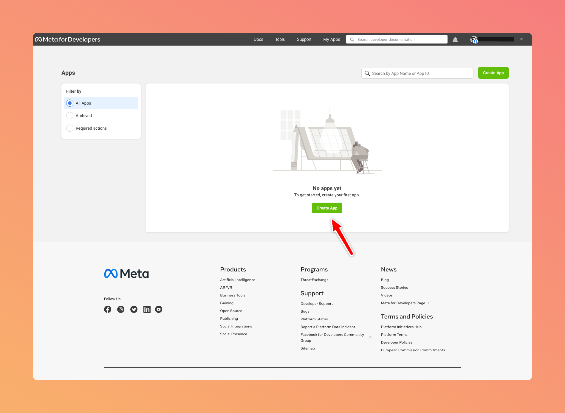 Go to Meta Developer Portal and create a new application.