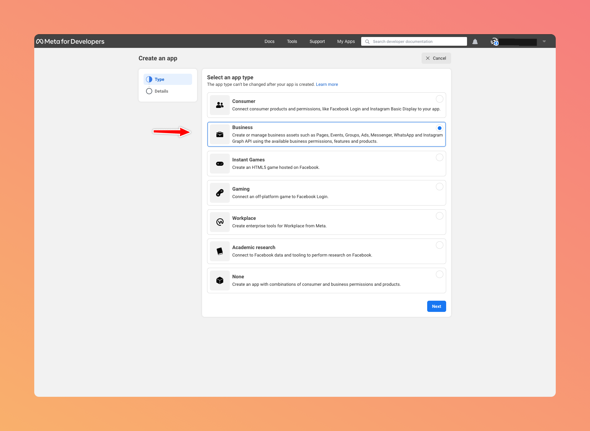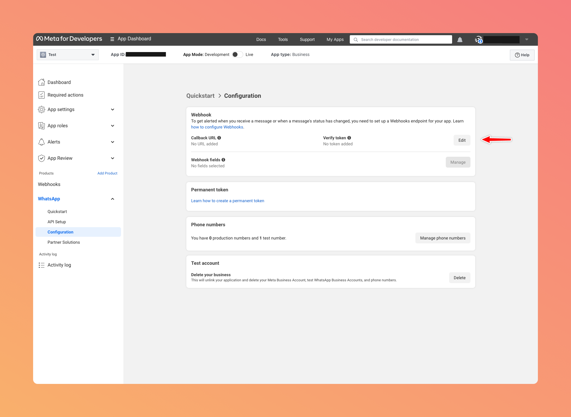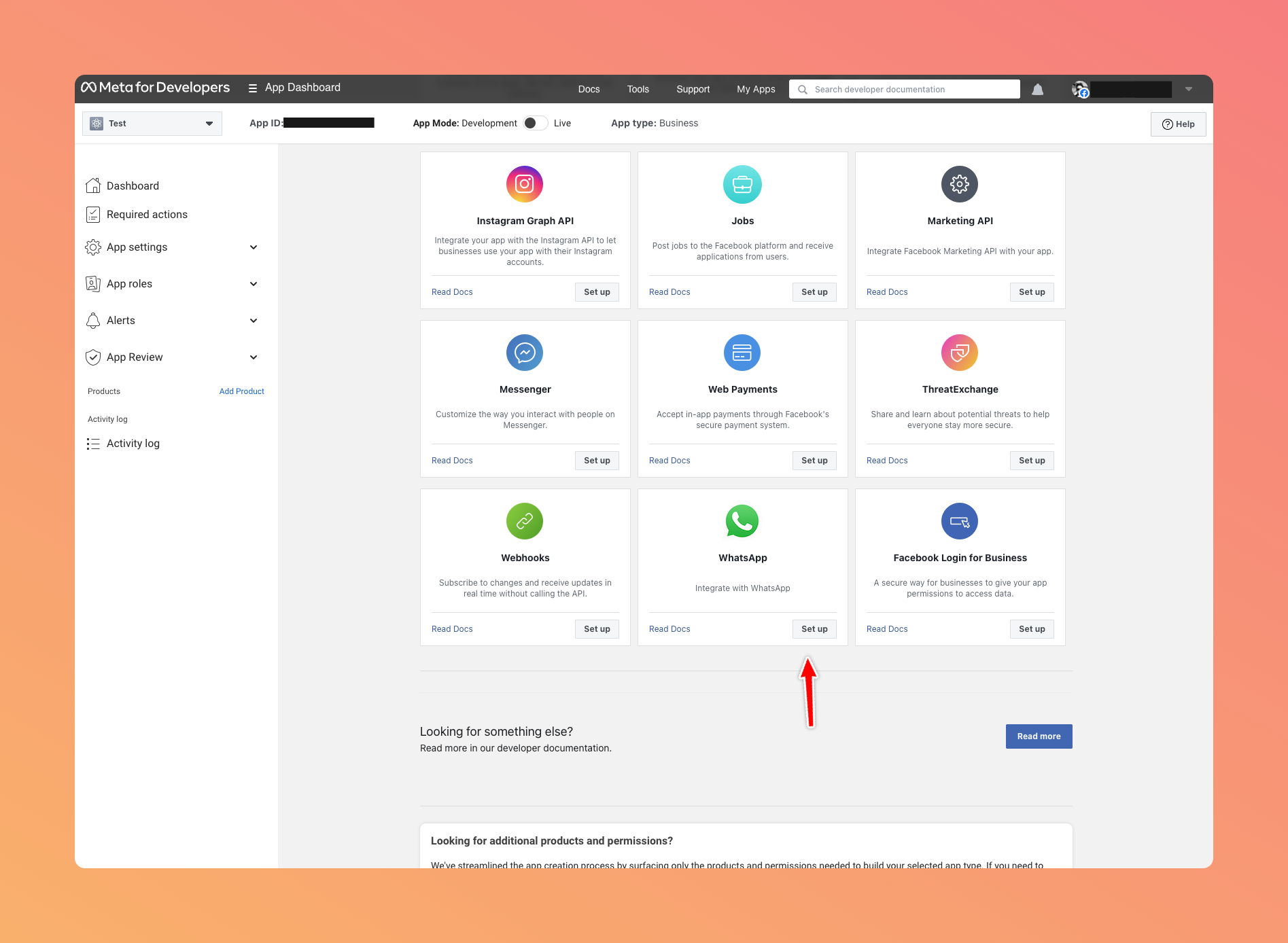 Before you proceed you will need Meta Business account. Depending on your business account status you may also need to setup payment details get a permanent or a test phone number which is required in subsequent steps.
