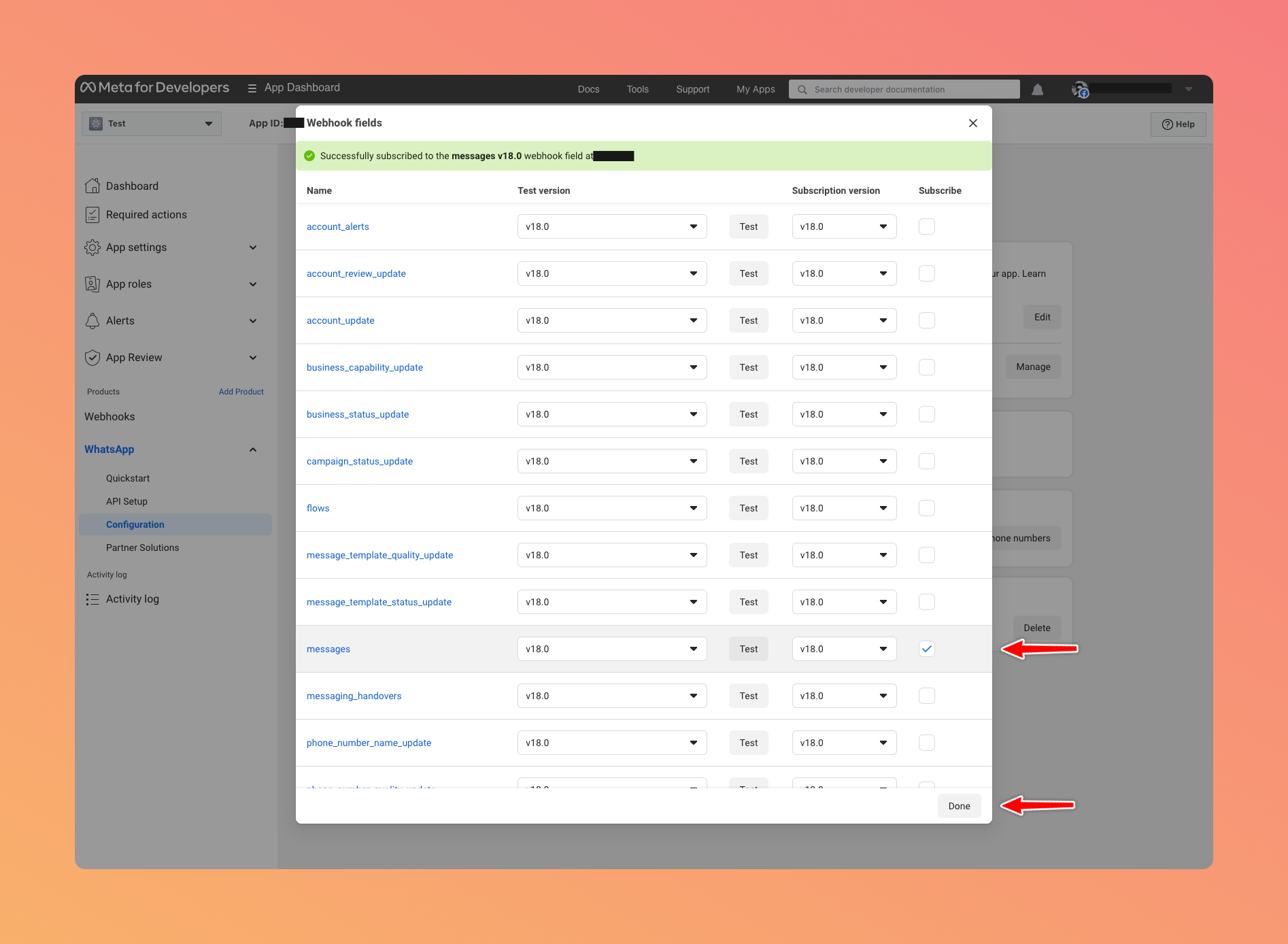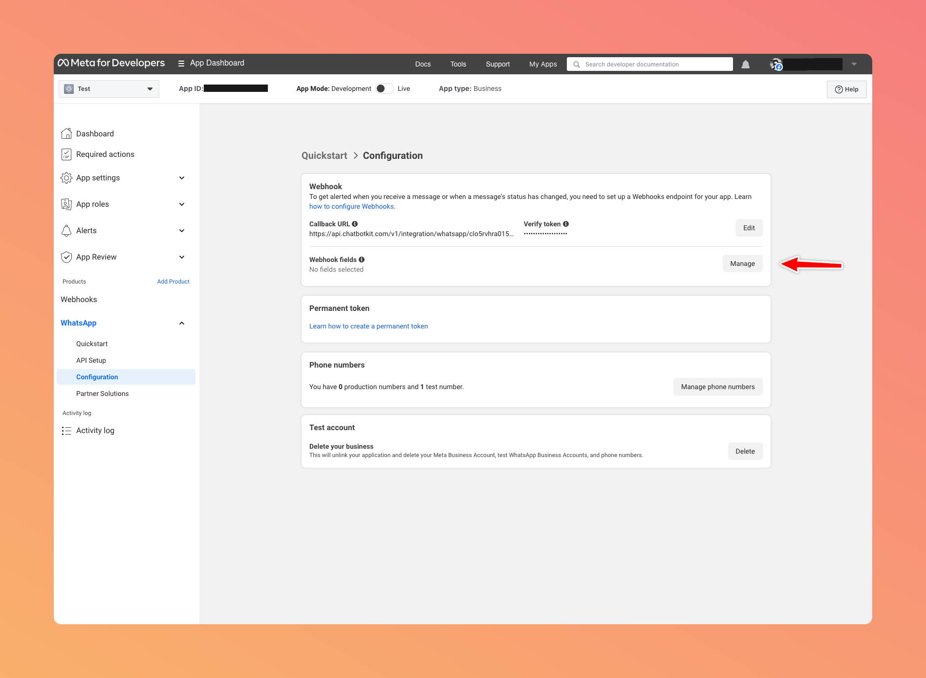 Save the "Callback Endpoint" and "Verify Token" for later.